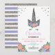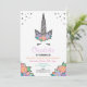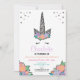Unicorn Silver Glitter Floral Birthday Invite
