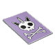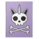 This graphic art piece combines the whimsical and the macabre, featuring a stylised skull with large, expressive eyes, a unicorn horn, and cat-like ears. As seen on Sophie's t-shirt, the skull is accompanied by crossbones, enhancing its playful yet gothic appeal. The design uses a simple black and white colour scheme, which emphasizes the bold and graphic nature of the illustration. This unique blend of elements makes it a perfect choice for those who appreciate a blend of fantasy, dark humour, and minimalist art.