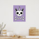 This graphic art piece combines the whimsical and the macabre, featuring a stylised skull with large, expressive eyes, a unicorn horn, and cat-like ears. As seen on Sophie's t-shirt, the skull is accompanied by crossbones, enhancing its playful yet gothic appeal. The design uses a simple black and white colour scheme, which emphasizes the bold and graphic nature of the illustration. This unique blend of elements makes it a perfect choice for those who appreciate a blend of fantasy, dark humour, and minimalist art.