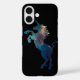 A fantasy silhouette of a unicorn with a space nebula pattern.
