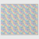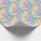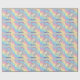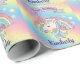 This cute and colourful wrapping paper features a beautiful illustration of a unicorn and pastel coloured rainbow, over a rainbow gradient background. Faux gold glitter accents the top and bottom portions of the illustration.  Little stars in matching colours surround the rainbow. A sample Happy Birthday banner is printed above the unicorn, and a sample name is printed below in an elegant purple script font. You can personalise the gift wrap to include your own custom name or text.