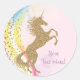Unicorn stickers with pretty gold unicorn on a pretty rainbow swirl background. You can easily customise these pretty unicorn stickers for your event by simply adding the text of your choice. You can also change the background colour. This is a printed design with no real glitter.