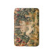 This unicorn tapestry is an enhanced reproduction of the "The Unicorn is Found" tapestry, which is the second tapestry of a series of seven mediaeval tapestries that showcases the mythical unicorn.The series is entitled "The Hunt of the Unicorn" which are also referred to as the Unicorn Tapestries". The tapestries were created from 1495-1505. This Unicorn is Found tapestry shows a group of mediaeval noblemen and hunters, as well as all kinds of ferocious lions and leopards. There is a unicorn at the front, a beautiful white unicorn, which has its horn pointed downward as it kneels. There is a mediaeval fountain between the unicorn and the huntsmen.