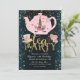 Unicorn Tea Party Gold Glitter Pink Girls Birthday Invitation