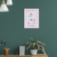 Cute unicorn theme baby shower welcome sign poster featuring an illustration of a baby unicorn with faux gold horn and rainbow color hair. Purple and pink theme color.