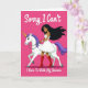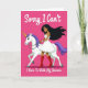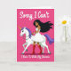 This card shows a modern digital illustration of a confident woman with warm-toned skin and long dark hair, walking a glowing white unicorn across a fuchsia pink background 💚. She wears a ruffled white dress that sways as she steps, paired with striking knee-high red boots that add a daring edge. Beside her, the unicorn’s purple mane and tail flow like satin, and its golden horn catches the light with a soft shine ☘️. Their forward stride matches, and her knowing smile lines up with the unicorn’s calm gaze, like two friends sharing a private joke on the way somewhere fun. The phrase “Sorry I Can’t, I Have To Walk My Unicorn” sits prominently across the design in a light-colored font that stands out clearly against the pink. The letters are arranged in easy-to-read lines above and around the figures, leaving the woman and unicorn centered as the main focus. The scene is framed by the uninterrupted fuchsia backdrop, with the white dress, white coat, purple hair, and gold horn popping against it. Share St. Patrick's Day sentiments with someone who loves a little magic in their day.