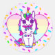 Unicorn with Butterfly on nose rainbow heart candy sprinkles pink and purple birthday party stickers.
