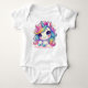 The "Sparkly Unicorn with Eyelashes" personalised kids' t-shirt features a charming, magical unicorn with long, fluttery eyelashes, a vibrant rainbow mane, and a shimmering horn. Surrounded by sparkles and stars, this adorable design adds a touch of whimsy and fun, perfect for any child who loves unicorns and enjoys a bit of sparkle. The soft pastel background complements the bright, playful colours, making it a delightful addition to any child's wardrobe.