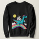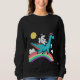 unicorn with sunglasses riding a dinosaur and rain sweatshirt