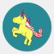 Unicorn Yellow Patriotic USA Flag Mane Cartoon Classic Round Sticker