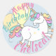 Cute Pastel Unicorn with balloons Happy Birthday Stickers with their name personalised. Fun stickers customised for any day or special occasion. Choose your shape and colours.