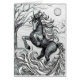 A black unicorn leaps in the moonlight, artfully printed from an original black & white pencil drawing by S.Lynnette