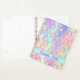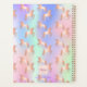 A trendy iridescent coloured background with unicorn pastel colours in pink, purple, mint green. Decorated with a golden coloured unicorn pattern. Personalise and add a name and a year written with a girly modern hand lettered style script. Purple coloured letters.