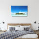 Canvas landscape print of a tropical uninhabited or desert island with palm trees and a shallow lagoon in the Pacific Ocean belonging to Rangiroa, an island of the Tahiti archipelago French Polynesia.