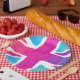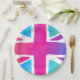 Cool looking watercolor design of the British flag / union jack. Bright and vivid watercolors include pink, purple, blue, turquoise and orange. The colours mix and blend together creating soft edges with a cloud like effect. Design has a unique look and an artistic flair.
