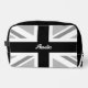 Union Flag (also known as the Union Jack), British flag in a black, white and grey design. With name added to the front in white that can be customised you your own name, or name of person to gift to.