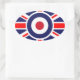 A vibrant Union Jack flag roundel design graphic print. Good for a patriotic occasion, sports, or for a gift with a retro ska mod look to it.