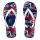 Striking Union Jack flip flops, change the background for a new colour. Easily change monogram