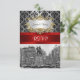 Customisable Invitations and accessories with a black and white view New York City's Union Square Park in the winter, lightly covered with snow. It also features a black damask pattern against a silver grey background, a red ribbon and a white label in your choice of a silver or gold look frame.