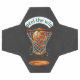 A vibrant and clever conceptual illustration featuring a basketball hoop where a peeled orange takes the place of a traditional basketball. The artwork sits on a solid black background, making the bright orange hues pop.