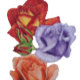 This large flower print contempory beach towel is covered with an original flower painting of red, blue and peach roses against a pale lemon background. The vibrant and colourful roses are painted in a watercolor medium. This original floral art really stands out against on this one of a kind beach towel. The bunches of flowers really catch the eye and stand out as unique and original.