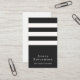 Smart, elegant design featuring three horizontal white stripes on black front. A versatile business card for creative professionals and entrepreneurs. This stylish business card is also great for beauty salons, spas, cosmetologists, estheticians, dance studios, boutiques, jewellery designers, hair and fashion stylists or any other image aware professionals.