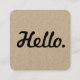 Unique Black Hello Typography Clean Rustic Craft Square Business Card