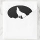 Unique Black & White Pop Art Wolf Silhouette Oval Sticker