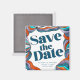 Are you looking for a unique retro-modern and trendy wedding save the date? Look at our retro-inspired Unique Bold Boho Groovy Retro Blue Colourful Wavy magnet! This wavy save the date features beautiful watercolor hand-painted wavy lines artwork with a colourful and boho abstract design giving a unique and trendy look, great for a retro wedding theme.