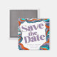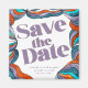 Are you looking for a unique retro-modern and trendy wedding save the date? Look at our retro-inspired Unique Bold Boho Groovy Retro Purple Colourful Wavy magnet! This wavy save the date features beautiful watercolor hand-painted wavy lines artwork with a colourful and boho abstract design giving a unique and trendy look, great for a retro wedding theme.