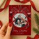 Spread holiday cheer with this festive card featuring a hand-drawn bow that crowns your favourite photo in a circular frame - creating the look of a festive Christmas ornament. The elegant red and white holiday card includes 'Merry Christmas' in a handwritten script font and your custom family name underneath.
