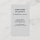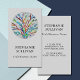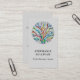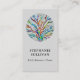 This unique business card is decorated with a colourful botanical mosaic design on a soft grey background.