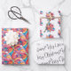 This Christmas wrapping paper features a trendy pattern of colourful watercolor poinsettia and script typography with the words "Merry Christmas". A cute yet rustic for festive holiday gift wrapping and unique Christmas gifts.