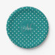 Unique & Classy Monogram Teal And White Polka Dots Paper Plate