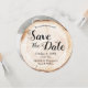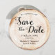 That perfect Save the date card for your rustic wedding theme would have elements of wood grain. I wanted to design a round card imitating a wood, disc slice you often see at beautiful and romantic weddings. Customise the bride and groom names, wedding date, location and include your wedding website with your photo. Delete the wedding website if it doesn't apply to you. A round transparent white overlay is behind the text to keep it readable. *digital downloadable version available.