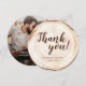 Send a heartfelt and unforgettable note of gratitude with this Rustic Wood Cut Wedding Thank You Card—a round keepsake that’s as unique as your love story. Designed to mimic the natural beauty of a tree ring slice, this one-of-a-kind thank you card features your wedding photo, names, and wedding date, all wrapped in cosy rustic charm.