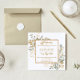 Do it yourself! Fully customisable text (date, name, time, location, personal message, and the arabic text) gold and green elegant modern floral wedding invitation card with arabic translation. Double sided with Arabic on one side and English on the other. Unique Modern gold square wedding card by Happily Ever After. Digital download available, personalise and download your file Instantly, no need to edit your download in a separate program.