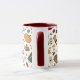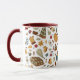 Unique fall Thanksgiving coffee mug hand drawn pattern with an orange sweater, warm scarf, cosy blanket, fall leaves, backpack, pumpkin spice coffee, mulled wine, pumpkin pie, fall candles, warm hat, gourd, autumn flowers, mushrooms, yellow pear, red apple, fall boots, cupcakes and warm socks. It's a unique November fall coffee mug for your cosy home. This cosy autumn coffee mug makes a perfect fall season gift for kids. Cosy October coffee mug with a fall season pattern is a unique coffee mug for her — you, your friend, girlfriend, mum, sister, daughter, aunt, niece, cousin and granddaughter. Get a Thanksgiving coffee mug with a cute one of a kind pattern now!