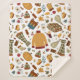 Unique fall Thanksgiving sherpa blanket hand drawn pattern with an orange sweater, warm scarf, cosy blanket, fall leaves, backpack, pumpkin spice coffee, mulled wine, pumpkin pie, fall candles, warm hat, gourd, autumn flowers, mushrooms, yellow pear, red apple, fall boots, cupcakes and warm socks. It's a unique November fall blanket for your cosy home. This cosy autumn baby blanket makes a perfect fall season gift for kids. Cosy October nursery blanket with a fall season pattern is a unique throw blanket for her — you, your friend, girlfriend, mum, sister, daughter, aunt, niece, cousin and granddaughter. Get a small Thanksgiving blanket with a cute one of a kind pattern now!