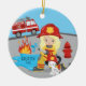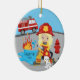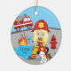 Cute Firefighter Christmas ornament featuring an adorable blonde girl with a fire truck, fire hydrant & a Dalmatian puppy wearing a fire hat. A Wonder Christmas gift sure to be treasured for many years to come.