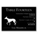 A funny and unique table or team number. Perfect for pet and dog lovers, this black and white monochrome table number is one of a collection of multiple dog breeds. The card reads the table number, followed by The Whippets, and a white outline image of a Whippet. As a joke about the guests personalities, four dog traits are listed including friendliness toward strangers, drooling potential, tendency to bark and howl and playfulness, alongside a rating out of five stars. The table card is suitable for a wedding, party, quiz or any other event that requires a team, table or seating plan.