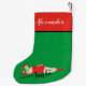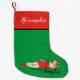 Funny, cartoon, pretty Mrs Claus red and green Christmas stocking with name - for him. Unique, simple, adorable a gift from Santa.