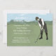 An ideal unique invitation for the golf lover, this hand drawn and coloured vintage style golf scene provides a stylish backdrop for that party invitation which is sure to impress all your golfing friends