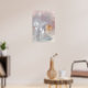 Bring a harmonious unique air to your environment with this minimalist Poster of a modern abstract art of a grey and pink background with orange and black details and white splashes made with mixed media.