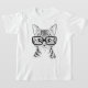 Unique Hand Drawn Nerdy Cat Girl's White T-shirt