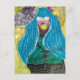 Unique Lady With Blue Hair Mixed Media Collage Postcard