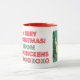 This unique mug is a great gift to give from the chickens to their owner (or, as the chickens think of it, their staff!). A funny chicken stands by a Christmas tree full of the season's spirit, tangled in lights and wearing a holly wreath just for the fun of it.