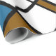 Modern geometric pattern in colour combination of dark red, black, white, blue, and mustard brown.