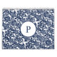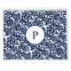 A striking navy blue damask pattern on a crisp white background, featuring intricate floral motifs and elegant curves. This design exudes sophistication and timeless charm.
