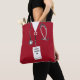 Creative nurse bag featuring red hospital scrubs and stethoscope art. To personalise, edit text to add name.